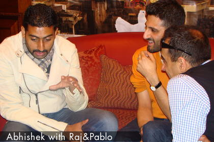 Raj: Hooked up with Abhishek on Saturday - he was on a brief stopover from New York en route to Mumbai after attending the premier of Ash's "The Pink Panther 2". Hugs galore and a joking tell off as we were running late. He celebrated his birthday in New York with all the family and told us he was really moved by a little girl who waited in the snow to give him a birthday present. Bless!! Make sure you listen to the show this Saturday as he reveals his Valentine's message to the lovely Ash. We joked about his new trim fit look - he looks amazing, but he is still a "foodie" He revealed he spent a lot of time in Delhi when growing up - his grandparents are based there and loves the food at the "dhabbas" in Chandni Chowk - and it made sure everyone on the sets gorged themselves on all of Delhi's delicious delights.