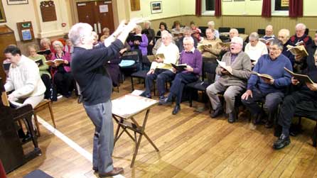 Alan Fewster yn paratoi côr ar gyfer perfformiad o'r Meseia