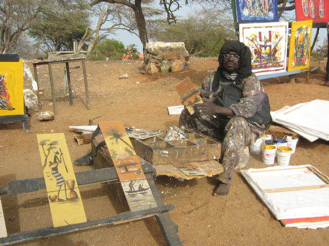 I agree with Beatriz that people from small towns or villages are very different from those who live in big cities. I think they are more open-hearted and eager to talk to you or give you a helping hand if you need it. But I'd rather refer this quality of character to only those people who live in small NON-tourist places because otherwise people are very tired of crowds of strangers who often have no idea of local traditions or simply don't respect them. Sometimes local people become even hostile but can we blame them? That's why it's really unusual that people from Goree are so friendly. And this painter's notion "art for art's sake", his desire to express himself and to tell strangers about the way of life in his motherland are worth admiring.