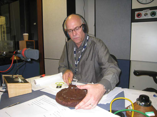 Enjoying chocolate cake instead of working!