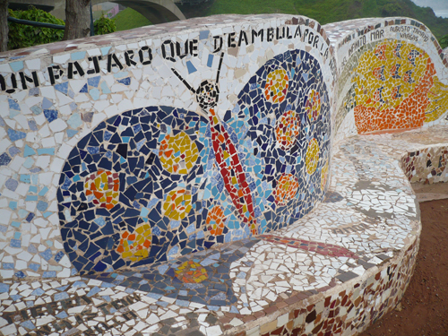 At 00:43 16th Oct 2010, beatriz wrote:Hi, Miguel: Always interesting and well written your blogs, and speccially attractive "El Parque del Amor". The poets quotations on the wall with the little tiles decoration make the monument picturesque. I think after reading the last paragraph "Voices in the park" that you are a very sensitive and romantic guy. Very nice the photos. I´d like to see some more of the Pacific coast. Could it be? Thanks. Bye. The best. Beatriz.