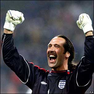 Allí se agotó la paciencia del seleccionador, Sven Goran Eriksson, que lo reemplazó por un señor muy apuesto, modelo de calzoncillos en sus ratos libres, un tal David James, que procedió a cometer errores más numerosos y más feos.