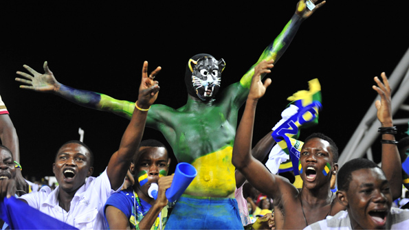 Gabon fans celebrate their last-gasp win over Morocco, a result which took the Panthers to the Nations Cup quarter-finals for the first time since 1996