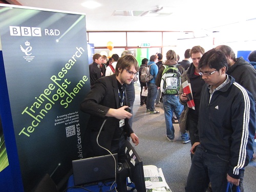 Although it was apparent that many students were surprised either at the existence of BBC R&D or at the work it does, they were in general very clearly interested. The look of slightly terrified awe in some of their faces reminded me of my own experience of wandering around careers fairs a couple of years ago – bag of freebies in hand – feeling excited but overwhelmed by the tales of impossible sounding work being undertaken across the industry. Fortunately for me, the abundance of training and support available in R&D gives trainees the opportunity to fulfil their potential, and gradually those impossible projects seem a little more achievable. Many of the students were disappointed that we had already closed applications for this year’s intake, but went away excited about applying for the following year. Let’s hope this is reflected in the number of applicants!