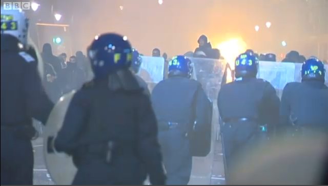 Cảnh sát Anh không được phép dùng tới đạn giả hay vòi rồng khi bị tấn công bằng gạch đá, gậy gộc và cả bom xăng