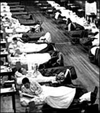 一个人们可能根本不会注意的事实是,英国每年死与季节性流感的人数在8,000-10,000人。我在办公室提到这个数字,好几位同事都说,不会吧,你有没有搞错? 赶紧再核实,不但没有错,而且又发现,美国每年死于季节性流感的人在30,000-40,000人。世界范围内,每年死于流感的人数在25万至50万之间。 其实,猪流感传染到人身上,这并不是第一次。1976年在美国,有200人患猪流感,只造成一人死亡。而四千万人接种预防疫苗,却导致25人死亡。“谨慎但不要惊慌”。这不是一句空话。 狼确实来过,而且吃人。 但是,12年前禽流感没有形成全球性爆发,并不等于我们可以对猪流感掉以轻心,心存丝毫的侥幸。狼来了的故事的结局不能忘记。 实际上,过去一百年间,已经发生过三次全球性流感,其结果是灾难性的。1957年的“亚洲流感”造成两百万人死亡,1968年的“香港流感”,死亡人数估计超过一百万。 最惨痛的教训,是被称作“传染之母”(Mother of all Pandemics)的“西班牙流感”。1918年爆发的“西班牙流感”,使当时全球人口的三分之一受到传染,出现临床症状,导致四千万至五千万人死亡。