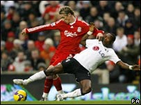 切尔西虽然失意,但总算舒了口气,因为紧随其后的利物浦也在主场被富勒姆逼平,错失大好机会。 一个有英超最强的主场战绩之一,一个是客场“鱼腩”,但本轮比赛结局恰恰相反,富勒姆利物浦的主场将主队0:0逼平。 杰拉德因伤未能出战、阿隆索也坐替补席,托雷斯则伤愈复出,马斯切拉诺镇守中场。 利物浦开场先声夺人,库伊特接奥莱利奥传球获打门机会,可惜球偏出。好在富勒姆没过多久就稳住阵脚,有章有法地与利物浦展开攻防。 一旦上半场守住后,下半场富勒姆信心大增,贝尼特兹调兵遣将,用阿隆索换下马斯切拉诺,终场前十分钟,又用奇兵巴贝尔替换里埃拉,但了杰拉德,就是缺少那么一点火花。 | 相关内容 赛事盘点:11月16日16 11, 2008 | 英超足球 Premiership 赛事盘点:11月9日09 11, 2008 | 英超足球 Premiership 赛事盘点:11月8日08 11, 2008 | 英超足球 Premiership 赛事盘点:11月3日03 11, 2008 | 英超足球 Premiership 赛事盘点:11月2日02 11, 2008 | 英超足球 Premiership | ||||||||||||||||||||||||||||||||||||||||||||||||||||