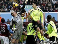 无奈平局 势头强劲的阿斯顿维拉本轮主场与维冈0:0 战平,失去了赶超切尔西和利物浦,跃居积分榜第二的机会。 维拉本场志在必夺,无奈两次击中门框,下半场占据压倒优势也没能进球。 维拉摆出上轮击败朴茨茅斯同样的阵势,希望能有所斩获。前锋阿邦拉霍和赫斯基相当活跃,一切迹象显示维拉应该能够拿下主场三分。 可是,当维冈顶住阿斯顿维拉的攻势后,就展开反攻,第30分钟,维冈队里德低射打门,对方门将弗里德尔用腿将球挡出。 此后,维拉前锋阿邦拉霍和卡鲁都有不错机会,但不是被对方门将挡出,就是击中门框。 主场只拿到一分,阿斯顿维拉主帅奥尼尔当然郁闷。他说: “我们有很好的机会,但最终是平局很遗憾。不过,我们已保持12场不败,这也不错,维冈几天前与利物浦战平,他们也是一支不错的队伍。” 枪手受阻