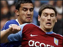 维拉反击 状态低迷的阿斯顿维拉本轮主场上演惊险一幕,在落后两球的情况下反击,终于逼平埃弗顿,艰难取得一分。 第19分钟,客队首开纪录。费拉尼接贝恩斯左路传球,推射远角破门得分。 维拉还没缓过神,仅四分钟后,卡希尔在禁区内接角球,摆脱维拉后防队员,头球破门。 如梦初醒的维拉随即展开反攻,第33分钟,卡鲁接妙传,攻入本赛季个人第八粒进球。 下半场,埃弗顿再次先声夺人,第53分钟,皮纳尔接内维尔妙传,转身打门,球划出弧线入网。 两球落后的阿斯顿维拉要想进军下赛季的欧洲赛事本场就必须取胜。没有了退路的维拉立即掀起第二轮攻势,仅两分钟后,就由米尔纳攻进一球,并最终由巴里的一记点球,终将比分追平。 | 相关内容 赛事盘点:4月11日11 4, 2009 | 英超足球 Premiership 赛事盘点:4月5日05 4, 2009 | 英超足球 Premiership 赛事盘点:4月4日04 4, 2009 | 英超足球 Premiership 赛事盘点:3月22日22 3, 2009 | 英超足球 Premiership 赛事盘点:3月21日21 3, 2009 | 英超足球 Premiership | ||||||||||||||||||||||||||||||||||||||||||||||||||||