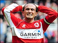 降级厄运 米德尔斯堡在领先一球的情况下,最后被阿斯顿维拉前锋卡鲁的一球逼平,痛失求生的一线机会,降级几乎成为定局。 第14分钟,通恰伊漂亮的一记打门为米队首开纪录,可惜,在余下的70多分钟内,米德尔斯堡未能扩大战果,反被卡鲁第57分钟的进球逼平。 不难理解,米德尔斯堡求胜心切,这让他们的后防出现漏洞,最终被对手逼平。 米德尔斯堡最后一轮客场对阵西汉姆,目前离安全区还差三分,但失球数比排名倒数第四的侯城要多。 最后一轮米队必须取胜,但如果侯城取得一分、纽卡斯尔也取得三分的话,米德尔斯堡将铁定降级,结束英超11年的生涯。 | 相关内容 赛事盘点:5月13日13 5, 2009 | 英超足球 Premiership 赛事盘点:5月11日11 5, 2009 | 英超足球 Premiership 赛事盘点:5月10日10 5, 2009 | 英超足球 Premiership 赛事盘点:5月9日09 5, 2009 | 英超足球 Premiership 赛事盘点:5月4日04 5, 2009 | 英超足球 Premiership | ||||||||||||||||||||||||||||||||||||||||||||||||||||