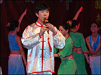 付晓同学的一曲民歌,悠扬婉转,赢得观众的阵阵掌声。接着是红扇舞社的踏青舞,轻盈的舞步,袅袅的身姿,展示了春天的韵味。2006首届曼城CSSA歌唱比赛的优胜者以及曼城优秀的华人歌手,用他们动人的歌喉为大家献上精彩的歌曲联唱。 随后民族乐器葫芦丝的演奏和婀娜多姿的傣族舞蹈更是引起我们对中国文化的自豪之情。 新华联谊会这个由曼城学术界和商界优秀的华人组成的社团也给观众带来了具有专业水平的歌唱表演,以此来表达他们在新春之际对祖国母亲最真挚的祝福。 中国功夫的精湛表演把整个上半场的晚会推到了最高潮!