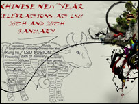 到英国第三年,拉大学生会的中国新年我也负责举办三次了。今年跟以往比起来,似乎又有许多令我印象深刻的地方。 遥控指挥 我2008年回国度假早,12月10日就离开了英国。放假前我刚成立了拉大学生会全球发展委员会(LSU Global Development Committee),通过竞选选拔了七位委员,他们全力支持我在拉大进一步推行“走向全球”战略。 但是,由于放假前时间仓促,我们这个委员会甚至连集体大会都还没开上一个,大家就各自度假的度假,复习的复习。对于圣诞假期里遥控指挥一群甚至我还不熟悉的委员,我心里其实是很担心的。但是出乎我意料的是,七位委员都相当负责,假期内不仅将各自分派的任务都很认真的完成,还提了很多办中国新年的好建议。 天才的学生设计师 让我印象最深刻的是专门负责海报设计的多媒体编辑——保罗Pawel,一个来自波兰的19岁金发小帅哥。让我印象深刻的不仅仅是他超强的责任心,更是他令人叫绝的设计才华。 当时他正在马来西亚和印尼交界处热带小岛和难得一见的家人度假,收到我的信后,Pawel二话不说,两天内就发给我两个创意草图,都极具想象力。