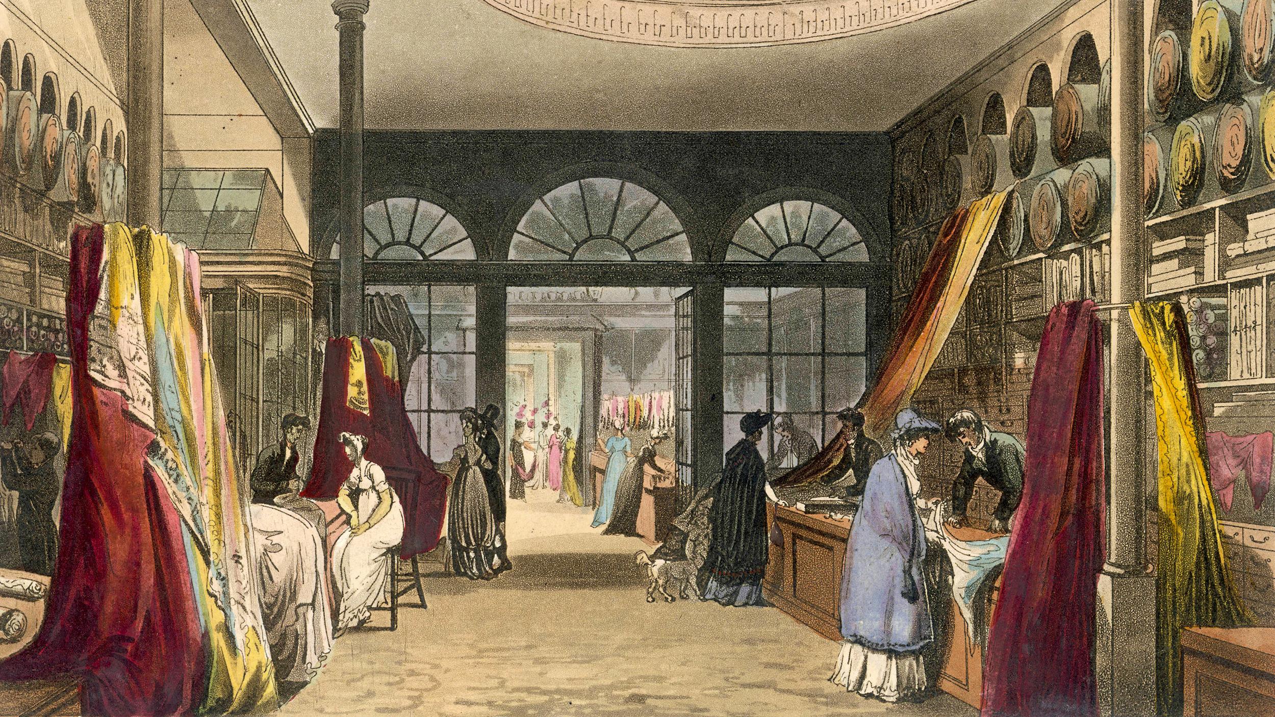 While there are rival contenders, the title of the world’s first department store belongs, perhaps, to Harding, Howell & Co’s Grand Fashionable Magazine at 89 Pall Mall in St James’s, London. Opened in 1796, this handsome Georgian shop was divided into four departments, offering furs and fans, haberdashery, jewellery and clocks, and millinery, or hats.