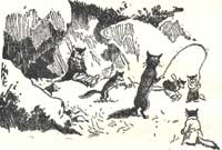 Pan dorrodd Sion Blewyn Coch a Sian Slei Bach i gwt ieir Eban Jones lladdwyd 12 cywen ganddynt. "Yr oedd yr olaf un yn mynd i agor ei phig i weiddi, ond dyma ddannedd Siôn Blewyn Coch yn gafael am ei gwddw nes ei bod hi'n gwneud sŵn fel sŵn dŵr yn gwagio o botel."