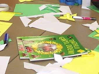 Bu disgyblion Ysgol Llanfairpwllgwyngyll, Ynys Mon, yn defnyddio'r llyfr, Dathlu Gwyl Dewi gan Elin Meek yn ystod eu paratoadau ar gyfer y diwrnod. Dyma luniau a dynnwyd yn yr ysgol.
