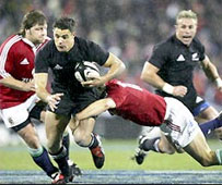 Blaenwyr Seland Newydd oedd yn ennill y frwydr yn y rhan honno o'r maes, ac roedd eu hamddiffyn yn sydyn i rwystro cefnwyr y Llewod.