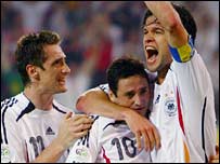 Eilyddion: Jansen, Huth, Kehl, Nowotny, Neuville, Kahn, Asamoah, Hitzlsperger, Borowski, Hildebrand, Odonkor.