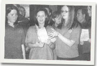 | Derbyniwyd gwahoddiad ar gais yr Urdd i ymuno yng Nghôr Unedig Aelwydydd Talaith y Gogledd i gymeryd rhan mewn cyngerdd i godi arian at Dŷ Gobaith. Ac felly i ffwrdd ag wyth ohonom i Gorwen, ar ôl ymarfer neu ddau i ymuno â chantorion o Aelwydydd Abergele, Bro Cernyw, Bro Gwerfyl, Chwilog, Gwrthern, Penllys, Llanuwchllyn, Llangwm, heb anghofio ein cyfeillion newydd o Aelwyd yr Ynys. Gyda thros 200 o leisiau roedd hi' n dipyn o wefr cael cynrychioli ein cornel fach ni o ogledd Cymru ar y llwyfan yna! Roedd hi' n gyngerdd arbennig gyda pherfformiadau gan Hogiau'r Wyddfa, y Ffarmwr Ffowc, yr unawdydd John Eifion, ac Elin Fflur a'i Band. Perlau'r noson oedd clywed Owain Llwyd yn perfformio 'Rhapsody Dyfrdwy' ar y piano, darn a oedd wedi ei gyfansoddi yn arbennig ar gyfer y noson, a pherfformiad bywiog Dewi Ellis Jones ar y marimba (xylophone enfawr i chi a fi!) Ond wrth gwrs, uchafbwynt y noson oedd y Côr i gyfeiliant yr hynod dalentog Annette Bryn Parry a than arweiniad Geraint Roberts (Dirprwy Brifathro Ysgol Emrys ap lwan, Abergele). Yng ngeiriau'r Côr, dyma sut brofiad oedd hi: Rhian Davies: "Roedd hi'n brofiad bythgofiadwy cael bod yn rhan o noson o' r fath. Ro'n i wedi gwirioni gymaint erbynyr encore wnes i anghofio'r geiriau yn llwyr!" Sian Meirion Hay: "Roedd o'n anrhydedd cael bod yn rhan o gôr mor fawr, efallai mai dyma'r cyfle olaf caf i, gan fod oedran yn dal fyny hefo fi!" Hafwen: "Roedd hi'n dda cael bod mewn côr mor fawr o leisiau ifainc, a chyfle i wneud ffrindiau newydd." Rebecca: "Roedd yr arweinydd yn ysbrydoliaeth i'r côr ac 'roedd hi'n braf cael cynrychioli y rhan yma o Ogledd Cymru"