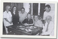 | Yr oeddynt yn lletya gyda Raymond Cunnington, yr oedd Francis gwraig Raymond a Christina yn ffrindiau pan oedd yn ddwy yn byw yn ardal y Don. Yr oedd Christina wedi dod â nifer o hen luniau gyda hi, ac angen gwybodaeth, fe wnaed cais llwyddiannus yn y Cambrian News, gyda nifer o drigolion yn barod i gysylltu. Yn y llun, mae rhai a ddaeth i gartref Raymond, a threulio noson ddifyr o hel hanesion am y teulu, a'r hen amser yn y Blaenau. Yr oedd Brenda Stone yn byw drws nesa i Peggy yng Nghongl y Wal, pan oeddynt yn blant, wedyn mudo i Gae Clyd.