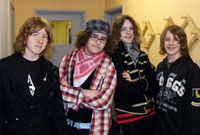 Band sydd eisiau dod a cherddoriaeth nol i Sir Benfro, hefo bwyell yn ein dwylo a merched yn ein dilyn" (ai dyna yw cyfiaethiad cywir "with ore axes in hand and are maidens in tow."?)