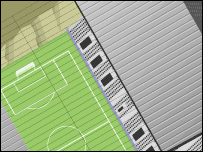 Při jihovýchodní straně stadionu je holá horská stráň, ne které bude umístěna obrovská televizní obrazovka, která bude přenášet opakování částí zápasů.