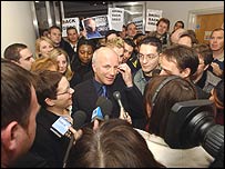 "Jednou z nezodpovězených otázek zůstává tato - srovnejte výpověď Alastaira Campbella před zahraničním výborem parlamentu a před lordem Huttonem a uvidíte jasné rozpory." Když se ale moderátor Dyka zeptal, co má přesně na mysli, tak neodpověděl. Tlak na britskou vládu ale v následujících týdnech či měsících skutečně asi bude cítit, zvláště až pomine ta nejvyhrocenější část sporů mezi BBC a kabinetem. Vše se točí kolem toho, zda v Irák měl zbraně hromadného ničení, což tak vehementně tvrdil premiér Tony Blair. Robin Cook, bývalý ministr zahraničí a od války v Iráku kritik premiéra Tonyho Blaira dnes vyzval kabinet, aby přiznal chybu: "Nechápu, jak může Tony Blair i nadále zastávat stejnou pozici, tedy tvrdit, že měl pravdu, když všichni ostatní už připouštějí, že pochybyli." |