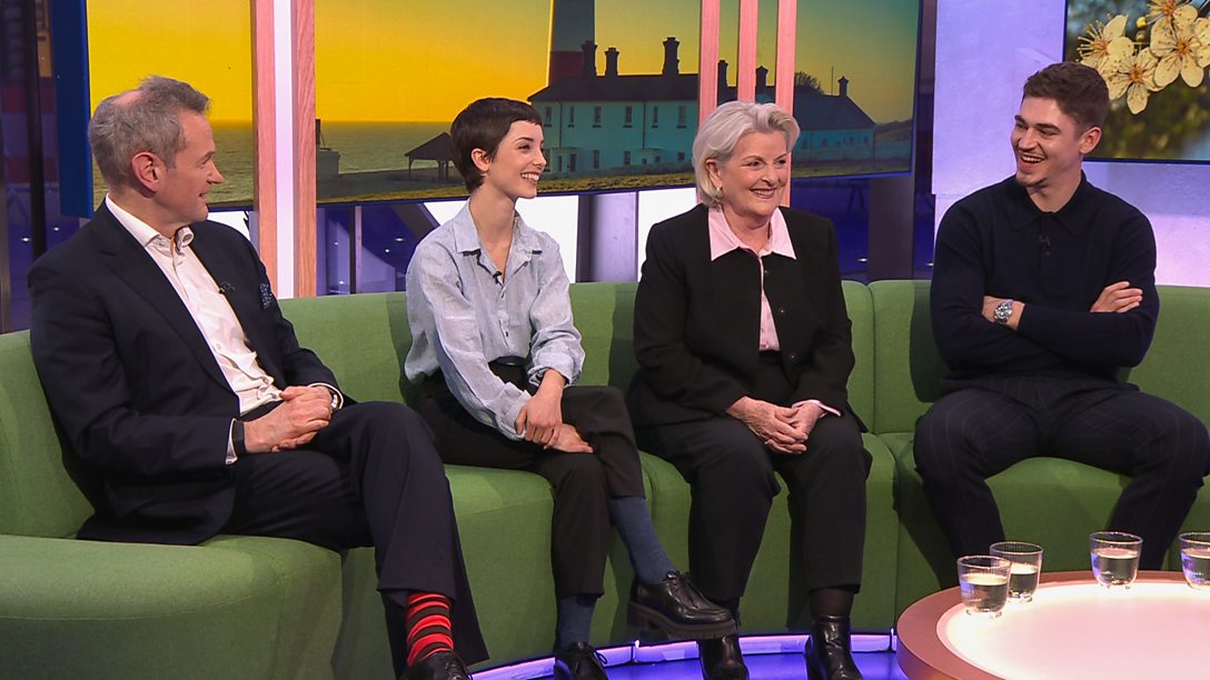 Alexander Armstrong, Brenda Blethyn, Jessica Reynolds and Hero Fiennes Tiffin join Alex Jones and Roman Kemp on the sofa.