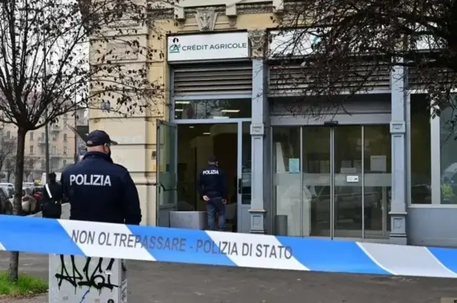 Polisi yagose ishami rya banki ya Crédit Agricole mu majyepfo y'Ubutaliyani nyuma gato y'uko ubujura butangiye saa sita z'amanywa ku isaha yo muri ako gace (10:00 GMT).