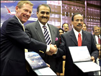 एयर इंडिया के चेयरमैन वी तुलसीदास ने कहा कि इन विमानों के एयर इंडिया में शामिल होने से कंपनी को अपना नेटवर्क बढ़ाने और विमान सेवा को आधुनिक बनाने में मदद मिलेगी. केंद्रीय नागरिक उड्डयन मंत्री प्रफुल्ल पटेल ने कहा कि इस समझौते से एयर इंडिया घरेलू और अंतरराष्ट्रीय विमान सेवा बाज़ार में अपने को प्रतियोगी बना पाएगी. उन्होंने कहा कि भारत में विमान सेवा उद्योग तेज़ी से बढ़ रहा है और अगले 10 वर्षों में इसके 20 से 25 फ़ीसदी की दर से बढ़ने की संभावना है. समझौते के मुताबिक़ भारत से उद्यम और उपकरण मंगाने में बोइंग 1.9 अरब डॉलर ख़र्च करेगा. इस पर भी सहमति हुई है कि बोइंग कंपनी भारत में एक रखरखाव, मरम्मत और एक निरीक्षण केंद्र के साथ-साथ एक पॉयलट प्रशिक्षण केंद्र खोलेगी. | इससे जुड़ी ख़बरें एयर इंडिया 20 साल बाद कनाडा की ओर14 मई, 2005 | कारोबार खाड़ी के देशों के लिए सस्ती उड़ानें29 अप्रैल, 2005 | कारोबार भारत से अमरीका के लिए नई उड़ानें14 अप्रैल, 2005 | कारोबार बोइंग के बारे में बुश ने बात की14 अप्रैल, 2005 | कारोबार भारत ब्रिटेन के बीच उड़ानें बढ़ेंगी13 अप्रैल, 2005 | कारोबार अब 'एयर इंडिया एक्सप्रेस' उड़ान भरेगा01 जून, 2004 | कारोबार एयर इंडिया सौ अरब के विमान ख़रीदेगी09 नवंबर, 2003 | कारोबार एयर इंडिया से यात्रा सस्ती27 मई, 2003 | कारोबार | |||||||||||||||||||||||||||||||||||||||||||||||||||||||||||||||||||||||||||||||||||||||||||||
