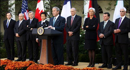 अमरीका के राष्ट्रपति जॉर्ज बुश ने दुनिया के धनी औद्योगिक देशों से अपील की है कि मौजूदा आर्थिक संकट से निपटने के लिए वे कोई भी एकतरफ़ा क़दम न उठाएँ. वॉशिंगटन में ग्रुप-7 देशों के वित्त मंत्रियों से मुलाक़ात के बाद राष्ट्रपति बुश ने कहा कि इस गंभीर आर्थिक संकट से निपटने के लिए सभी को मिल-जुल कर क़दम उठाने की आवश्यकता है. उन्होंने कहा कि अंतरराष्ट्रीय वित्तीय संकट से निपटने के लिए विश्व स्तर पर कार्रवाई करने की ज़रूरत है. उन्होंने कहा कि जी-7 देश वित्तीय बाज़ार में नक़दी की उपलब्धता बनाए रखने के लिए मिल-जुलकर क़दम उठाएँगे. क़दम बुश ने कहा, "जी-7 देशों ने महत्वपूर्ण वित्तीय संस्थानों की मदद करने और उन्हें नाकामी से बचाने के लिए निर्णायक क़दम उठाने का फ़ैसला किया है. इसके तहत आम लोगों की बचत की सुरक्षा की जाएगी, और ये सुनिश्चित किया जाएगा कि वित्तीय संस्थान ज़रूरी पूँजी उगाह सकें." दुनिया के सात धनी औद्योगिक देशों ने बड़े बैंकों और वित्तीय संस्थाओं को दिवालिया होने से बचाने के लिए हरसंभव उपाय करने की घोषणा की है. अमरीकी वित्त मंत्री हेनरी पॉलसन ने उस पाँच सूत्री योजना की जानकारी दी, जिसे जी-7 के वित्त मंत्रियों की मंज़ूरी मिली है. इस योजना का उद्देश्य है बाज़ार में कर्ज़ के लिए पर्याप्त धन उपलब्ध कराना और रुके पड़े आवासीय ऋण बाज़ार को आगे बढ़ाना. शुक्रवार को ही हेनरी पॉलसन ने घोषणा की थी कि अमरीका 1930 के बाद पहली बार सीधे बैंकों में निवेश करेगा. ब्रिटेन ने भी ऐसे ही क़दमों की घोषणा की थी. शुक्रवार को एशियाई, यूरोपीय और अमरीकी शेयर बाज़ार में गिरावट का दौर जारी था. संकट से निपटने के लिए यूरोज़ोन के नेता रविवार को एक बैठक करने वाले हैं. | इससे जुड़ी ख़बरें अब राष्ट्रीय कर्ज़ लिखने में परेशानी09 अक्तूबर, 2008 | कारोबार एशियाई शेयर बाज़ारों से मिश्रित संकेत09 अक्तूबर, 2008 | कारोबार 'थोड़ा असर तो पड़ेगा'08 अक्तूबर, 2008 | कारोबार टाटा ने किया एक और बड़ा सौदा08 अक्तूबर, 2008 | कारोबार सात केंद्रीय बैंकों ने ब्याज दर घटाई08 अक्तूबर, 2008 | कारोबार एशियाई शेयर बाज़ारों में खलबली08 अक्तूबर, 2008 | कारोबार कुछ और बैंक डूब सकते हैं: पॉलसन08 अक्तूबर, 2008 | कारोबार भारतीय बाज़ार में जारी रही गिरावट08 अक्तूबर, 2008 | कारोबार इंटरनेट लिंक्स बीबीसी बाहरी वेबसाइट की विषय सामग्री के लिए ज़िम्मेदार नहीं है. | |||||||||||||||||||||||||||||||||||||||||||||||||||||||||||||||||||||||||||||||||||||||||||||