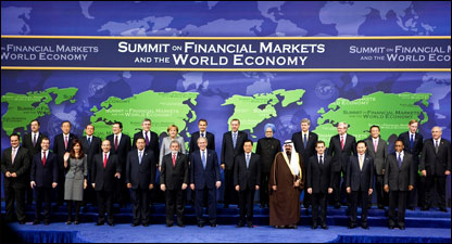 जी-20 की बैठक में मंदी से निपटने के लिए कार्य योजना बनाने पर सहमति बनी है. हालाँकि साझा योजना पर सहमति नहीं बन पाई. सभी देश अपने घरेलू हालात के मुताबिक उचित क़दम उठाएंगे ताकि अर्थव्यवस्था की सुस्ती को ख़त्म किया जा सके. अंतरराष्ट्रीय बाज़ार के नियमन और निगरानी के लिए 31 मार्च तक सुझाव पेश करने की डेडलाइन तय की गई. उन वित्तीय कंपनियों की सूची जारी करने पर भी सहमति बनी जिनके डूबने से वैश्विक वित्त व्यवस्था पर गंभीर असर पड़ सकता है. बीसों सदस्य देश अगले साल अप्रैल में एक बार फिर बैठक करेंगे और आगे की रणनीति पर चर्चा करेंगे. अमरीकी राष्ट्रपति बुश ने कहा कि वो बैठक से संतुष्ट हैं. उन्होंने कहा, "अगले साल मैं तो राष्ट्रपति नहीं रहूंगा लेकिन ओबामा आपसे मुखातिब होंगे." भारत की दलील भारतीय प्रधानमंत्री मनमोहन सिंह ने कहा है कि वैश्विक आर्थिक मंदी के लिए विकासशील देश ज़िम्मेदार नहीं हैं बल्कि वे भुक्तभोगी हैं. ख़ुद अर्थव्यवस्था के जानकार भारतीय प्रधानमंत्री ने वाशिंगटन में आयोजित शिखर सम्मेलन में कहा, "मंदी से विकासशील देशों का निर्यात प्रभावित होगा और उन्हें कर्ज़ मिलने में भी दिक्कत होगी. विदेशी निवेश तो कम होगा ही. इन सबका असर विकास दर में कमी के रुप में सामने आएगा." मनमोहन सिंह ने कहा कि विकासशील देशों में विकास दर में कमी का मतलब होगा लाखों लोगों को ग़रीबी की ओर धकेल देना. उन्होंने चेतावनी भरे लहज़े में कहा कि मंदी का असर स्वास्थ्य और शिक्षा के क्षेत्र में भी पड़ सकता है. इससे बचने का सुझाव देते हुए मनमोहन सिंह ने कहा, "सक्षम देशों की ओर से समन्वित वित्तीय मदद मंदी के असर को कम करने और इसकी अवधि घटाने में सहायक हो सकता है." साझा ढाँचे की ज़रूरत उन्होंने कहा कि जो भी नया ढ़ाँचा बनाया जाए उसमें बहुपक्षीय निगरानी की विश्वसनीय व्यवस्था की जाए. भारतीय प्रधानमंत्री ने ज़ोर देकर कहा कि धनी देशों के संगठन जी-7 के सदस्य अकेले मौजूदा चुनौती से निपटने में विफल साबित होंगे. ब्राज़ील के राष्ट्रपति लूला ड सिल्वा ने कहा कि मंदी से बचने का सबसे बेहतर ऊपाय ये है कि धनी देश अपने गिरेबाँ में झाँकें और अपनी समस्या दूर करें. उन्होंने कहा कि ब्राज़ील में स्थानीय माँग बढ़ाने की कोशिश हो रही है ताकि निर्यात पर निर्भरता कम हो. अमरीका के राष्ट्रपति जॉर्ज बुश ने कहा है कि जी-20 में आर्थिक मंदी को लेकर हुई प्रगति से वे संतुष्ट हैं. दुनिया के बीस प्रमुख विकसित और विकासशील देशों के संगठन जी-20 की बैठक को संबोधित करते हुए उन्होंने आगाह किया कि 'संरक्षणवाद' समस्या का समाधान नहीं है. उन्होंने कहा, "ऐसी परिस्थितियों में इस बात का ख़तरा रहता है कि सरकारें संरक्षणवादी नीतियाँ अपनाने लगती हैं." उन्होंने कहा कि खुले बाज़ार और व्य