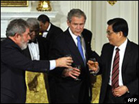 अमरीका के राष्ट्रपति जॉर्ज बुश ने कहा है कि जी-20 में आर्थिक मंदी को लेकर हुई प्रगति से वे संतुष्ट हैं. दुनिया के बीस प्रमुख विकसित और विकासशील देशों के संगठन जी-20 की बैठक को संबोधित करते हुए उन्होंने आगाह किया कि 'संरक्षणवाद' समस्या का समाधान नहीं है. उन्होंने कहा, "ऐसी परिस्थितियों में इस बात का ख़तरा रहता है कि सरकारें संरक्षणवादी नीतियाँ अपनाने लगती हैं." उन्होंने कहा कि खुले बाज़ार और व्यापार की नीति ही जारी रहनी चाहिए. अगले दो महीने के लिए अमरीका के राष्ट्रपति रहने वाले जॉर्ज बुश ने कहा कि नेताओं ने 'बेबाक' तरीक़े से बातचीत की और प्रगति भी हुई है, लेकिन उन्होंने कहा कि अभी बहुत कुछ किया जाना बाक़ी है. ब्रितानी प्रधानमंत्री गॉर्डन ब्राउन ने कहा कि अंतरराष्ट्रीय बैंकिंग व्यवस्था में 'साफ़-सफ़ाई' की ज़रूरत है, उन्होंने ज़ोर दिया कि इस बैठक में जो उपाय सुझाए गए हैं उन पर जल्द से जल्द अमल किया जाना चाहिए. भारत के प्रधानमंत्री मनमोहन सिंह सहित इस बैठक में दुनिया के 20 शीर्ष नेता हिस्सा ले रहे हैं. मनमोहन सिंह की आर्थिक मामलों की विशेषज्ञता की वजह से उनकी सलाहों को काफ़ी अहमियत दी जा रही है. बीबीसी संवाददाता का कहना है कि इस बैठक में हिस्सा ले रहे नेताओं में थोड़े मतभेद भी हैं, अमरीका और कुछ अन्य देश हल्के-फुल्के सुधारों के हामी हैं जबकि कई यूरोपीय देश कड़े नियमों की वकालत कर रहे हैं. ब्रितानी विदेश मंत्री गॉर्डन ब्राउन ने कहा कि नेताओं को कई मुश्किल मुद्दों पर सहमति बनानी है, उन्होंने कहा कि जल्द से जल्द यह समय सीमा तय करने की ज़रूरत है ताकि बैंकों को क्रेडिट उपलब्ध हो और वे लोगों को उधार दे सकें. जर्मन चांसलर एंगेला मर्केल ने कहा कि "दुनिया के सभी देश इस समस्या से प्रभावित हैं और उनके भीतर इसे सुलझाने की इच्छाशक्ति भी दिख रही है जो बहुत ही आशाजनक बात है. लोग चाहते हैं कि ऐसा संकट दोबारा पैदा न हो". इस बैठक के बाद जी-20 के नेता अगले वर्ष मार्च में दोबारा बैठक करके स्थिति की समीक्षा करेंगे, तब तक नवनिर्वाचित राष्ट्रपति ओबामा कार्यभार संभाल चुके होंगे. वाशिंगटन में हो रही मौजूदा बैठक में अंतरराष्ट्रीय मुद्रा कोष और विश्व बैंक जैसी संस्थाओं की भूमिका पर भी चर्चा हो रही है. जी-20 में अमरीका और विकसित यूरोपीय देशों के अलावा भारत, चीन और ब्राज़ील जैसी उभरती अर्थव्यवस्थाएँ भी हैं. इस संगठन के सदस्य देशों की अर्थव्यवस्थाएँ सारी वैश्विक अर्थव्यवस्था का 85 प्रतिशत हिस्सा है. |