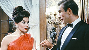 पहली बॉन्ड फिल्म डॉक्टर नो में ताश की मेज़ पर पहले ही कुछ बाज़ियां हार चुकी, लाल रंग की ड्रैस में सिल्विया ट्रैन्च, ऊंचा दांव लगाने का सुझाव देती है जिस पर जेम्स बॉन्ड कहते हैं, "मैं आपकी हिम्मत की दाद देता हूं मिस.....?"
