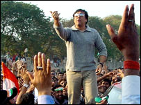 सब बहुत ही मेहनती और समझदार हैं. आजकल टेलीविज़न पर जो दुनिया के स्तर पर प्रतिस्पर्धा चल रही है उसके लिए बहुत मेहनत की ज़रूरत है और वो हमारे कलाकार कर रहे हैं. मेरे हिसाब से दुनिया के स्तर पर अपनी पहचान क़ायम करना कोई आसान काम नहीं है लेकिन इंडस्ट्री के कई कलाकारों ने ऐसा कर दिखाया है. आप सांसद भी हैं. राजनीति और फ़िल्में, दोनों कैसे संभालते हैं? मुश्किल तो है लेकिन मैं राजनीति और फ़िल्म दोनों में ही सीमित चलता हूँ इसलिए संभाल लेता हूँ. संसद में आपकी हाजिरी बहुत कम होती है, ऐसा क्यों? जिस समय मैं राजनीति में दाखिल हुआ था, मेरी अपनी कुछ समस्याएँ थीं. फिर भी मैंने अपनी जनता से कहा था कि मैं जो कर सकता हूँ, वो करूँगा. दूसरे लोग क्या बोलते हैं, मैं उसपर ध्यान नहीं देता हूँ. हमारे देश में सबसे बड़ी समस्या पानी और परिवहन की है. दूसरे राजनीतिज्ञों जैसा बड़ा बोलकर कुछ न करने से उलट मैं अपना काम करने में विश्वास रखता हूँ. मेरा काम करने का अपना तरीका है और संसद में हाजिरी लगाने से बढ़कर भी कुछ काम करना है. क्या आपको लगता हैं कि राजनीति में आकर आपने ग़लती की? फैसला फैसला होता है और समय समय. समय के साथ ही आप बहुत सारी चीजें सीखते भी हैं. मुझे लगता है कि अगर मैं राजनीति में नहीं होता तो इतने सामान्य लोगों से मिलने का मौका भी नहीं मिलता. जब मैं कोई फैसला करता हूँ तो उसकी अच्छाइयों और बुराइयों पर ज़्यादा ध्यान नहीं देता हूँ, बस उसपर काम करता चला जाता हूँ. | इससे जुड़ी ख़बरें ख़ूब हँसाएगी प्रियदर्शन की भागमभाग20 नवंबर, 2006 | पत्रिका विदेशी अभिनेत्री के साथ गोविंदा 18 जनवरी, 2006 | पत्रिका गोविंदा को मिल रही हैं धमकियाँ02 अप्रैल, 2006 | भारत और पड़ोस गोविंदा-दाऊद के टेप पर विवाद20 अक्तूबर, 2005 | भारत और पड़ोस नाइक के विरुद्ध 'छोटे मियाँ' उतरे मैदान में25 मार्च, 2004 | भारत और पड़ोस लीक से हट कर बनी एक और फ़िल्म05 दिसंबर, 2003 | पत्रिका | |||||||||||||||||||||||||||||||||||||||||||||||||||||||||||||||||||||||||||||||||||||||||||||
