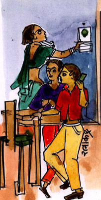 ‘‘ओह! तो इसे दिखाने के लिए तूने मेरी नींद खराब कर दी. बद्तमीज कहीं की!’’ ‘‘इस चित्र को ज़रा आँख खोलकर अच्छी तरह तो देख. न पा गई पहला इनाम तो नाम बदल देना.’’ चित्र को चारों ओर से घुमाते हुए अरुणा बोली,‘‘किधर से देखूं, यह तो बता दे? हज़ार बार तुझसे कहा कि जिसका चित्र बनाए उसका नाम लिख दिया कर जिससे ग़लतफहमी न हुआ करे, वरना तू बनाए हाथी और हम समझें उल्लू.’’ फिर तस्वीर पर आँख गड़ाते हुए बोली,‘‘किसी तरह नहीं समझ पा रही हूँ कि चौरासी लाख योनियों में से आखिर यह किस जीव की तस्वीर है?’’ ‘‘तो आपको यह कोई जीव नज़र आ रहा है? अरे, ज़रा अच्छी तरह देख और समझने की कोशिश कर.’’ ‘‘यह क्या? इसमें तो सड़क, आदमी, ट्राम, बस, मोटर, मकान सब एक-दूसरे पर चढ़ रहे हैं, मानो सबकी खिचड़ी पकाकर रख दी हो. क्या घनचक्कर बनाया है?’’ और उसने वह चित्र रख दिया. ‘‘ज़रा सोचकर बता कि यह किसका प्रतीक है?’’ ‘‘तेरी बेवकूफ़ी का. आई है बड़ी प्रतीकवाली.’’ ‘‘ज़रा सा दिमाग लगाने की कोशिश करेगी तो समझ में आ जाएगा कि यह चित्र आज की दुनिया के ‘कंफ्यूज़न’ का प्रतीक है. बस, हाँ थोड़ा दिमाग होना ज़रूरी है.’’ चित्रा ने चुटकी ली तो अरुणा भभक उठी. ‘‘मुझे तो तेरे दिमाग में कंफ्यूज़न का प्रतीक नज़र आ रहा है. बिना मतलब ज़िंदगी ख़राब कर रही है.’’ और अरुणा मुँह धोने के लिए बाहर चली गई. लौटी तो देखा तीन-चार बच्चे उसके कमरे के दरवाज़े पर खड़े उसकी प्रतीक्षा कर रहे हैं. आते ही बोले,‘‘दीदी! सब बच्चे आकर बैठ गए, चलिए.’’ ‘‘आ गए सब बच्चे? अच्छा चलो, मैं अभी आई.’’ बच्चे दौड़ पड़े. ‘‘क्या ये बंदर पाल रखे हैं तूने भी? फिर ज़रा हँसकर चित्रा बोली,‘‘एक दिन तेरी पाठशाला का चित्र बनाना होगा. ज़रा लोगों को दिखाया ही करेंगे कि हमारी एक ऐसी मित्र साहब थीं जो सारे जमादार, दाइयों और चपरासियों के बच्चों को पढ़ा-पढ़ाकर ही अपने को भारी पंडिता और समाज-सेविका समझती थी.’’ ‘‘जा-जा समझते हैं तो समझते हैं. तू जाकर सारी दुनिया में ढिंढोरा पीटना, हमें कोई शर्म है क्या? तेरी तरह लकीरें खींचकर तो समय बर्बाद नहीं करते.’’ और पैर में चप्पल डालकर वह बाहर मैदान में चली गई, जहाँ बिना किसी आयोजन के ही एक छोटी सी पाठशाला बनी हुई थी. **** रात के दस बजे थे. सारे हॉस्टल की बत्तियाँ नियमानुसार बुझ चुकी थीं. ऊपर के एक तल्ले पर अंधेरे में ही खुसुर-फुसुर चल रही थी. रविवार के दिन तो यों ही छुट्टी का मूड रहता है. दूसरे, दिन में काफ़ी नींद निकाल ली जाती थी, सो दस बजे लड़कियों को किसी तरह भी नींद नहीं आती थी. तभी हॉस्टल के फाटक में जलती हुई टॉर्च लिए कोई घुसा. अपने कमरे की खिड़की में से झाँकते हुए सविता ने कहा,‘‘ठाठ तो हॉस्टल में बस अरुणा ही के हैं, रात नौ बजे लौटो, दस बजे लौटो, कोई बंधन नहीं. हम लोग तो दस के बाद बत्ती भी नहीं जला सकते.’’