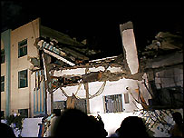 इसराइली विमान ने ग़ज़ा में फ़लस्तीनी ठिकानों पर हवाई हमले किए हैं. एक स्कूल पर हुए हमले में कम से कम 17 फ़लस्तीनी घायल हो गए हैं. ग़ज़ा से इसराइल की वापसी के बाद पहली बार हो रहे ये हमले रविवार तड़के तक जारी थे. इसराइल ने कहा है वह कि शुक्रवार को फ़लस्तीनी चरमपंथी गुट हमास के रॉकेट हमले की प्रतिक्रिया में कार्रवाई कर रहा है. हमले में पाँच इसराइली नागरिक घायल हो गए थे. दूसरी ओर हमास का कहना है कि उसने शुक्रवार को ही उन धमाकों के बाद रॉकेट दागे जिनमें कम से कम 15 फ़लस्तीनियों की मौत हो गई. हमास धमाकों के लिए इसराइल पर आरोप लगाता है, जबकि इसराइल का कहना है कि धमाकों में उसकी कोई भूमिका नहीं थी. इसराइली अधिकारियों ने फ़लस्तीनी क्षेत्र में सेना भेजे जाने की संभावना से भी इनकार नहीं किया है. मंत्रिमंडल की मंज़ूरी इससे पहले इसराइली मंत्रिमंडल की सुरक्षा संबंधी समिति ने फ़लस्तीनी क्षेत्र में सैनिक कार्रवाई को मंज़ूरी दे दी. इसराइली अख़बार हैरेत्ज़ के अनुसार इसराइली कार्रवाई को ऑपरेशन फ़र्स्ट रेन का नाम दिया गया है. इसमें ज़मीनी और हवाई हमलों के अलावा ख़ास हमास नेताओं को निशाना बनाया जाना शामिल होगा. संयुक्त राष्ट्र महासचिव कोफ़ी अन्नान ने ताज़ा हिंसा पर चिंता ज़ाहिर की है. येरूशलम से बीबीसी संवाददाता के अनुसार इसराइल ने ग़ज़ा में ऐसे समय कार्रवाई की है जबकि एक बार फिर प्रधानमंत्री अरियल शेरॉन के नेतृत्व को चुनौती मिल रही है. |