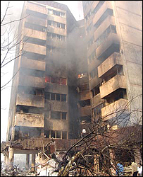 ईरान की राजधानी तेहरान में एक सैनिक विमान के एक 10 मंज़िला इमारत से टकराने से 128 लोग मारे गए हैं. ये दुर्घटना तब हुई जब ये विमान आपातकालीन उपाय से एक हवाई अड्डे पर उतरने का प्रयास कर रहा था. इसी दौरान विमान तेहरान के याफ़्ताबाद इलाक़े में एक 10 मंज़िला इमारत से टकराया जिससे बड़ा धमाका हुआ और आग लग गई. ईरानी अधिकारियों ने कहा है कि इस विमान में सवार 94 यात्रियों के अतिरिक्त चालक दल के सभी सदस्य मारे गए हैं. लगभग 90 लोगों को अस्पताल में भर्ती कराया गया है जिनमें अधिकतर लोग जलने के कारण घायल हो गए हैं. ईरान के सरकारी टीवी चैनल का कहना है कि सी130 विमान में उड़ान भरने के थोड़ी ही देर बाद तकनीकी ख़राबी आ गई थी. एक प्रत्यक्षदर्शी ने बताया कि उन्होंने विमान को इमारत से टकराने से ठीक पहले देखा था, "मुझे लगा कि यह विमान तो बिल्डिंग से टकराने वाला है तभी वह सचमुच टकरा गया." इमारत तेहरान से बंदरअब्बास जा रहा था, यह ईरानी सेना का विमान था और उसमें कई पत्रकार और फ़ोटोग्राफ़र सवार थे जिन्हें सेना के अधिकारी सैनिक अभ्यास दिखाने ले जा रहे थे. ईरानी वायु सेना के पास काफ़ी पुराने सी-130 विमान हैं जिनमें से कुछ तो 25 वर्ष से भी अधिक पुरानी हैं. हवाई सुरक्षा के मामले में ईरान का रिकॉर्ड दुनिया के बाक़ी देशों के मुकाबले ख़राब रहा है और वहाँ काफ़ी विमान दुर्घटनाएँ होती रहती हैं. लेकिन ईरानी अधिकारियों का कहना है कि अमरीकी प्रतिबंध की वजह से उन्हें विमानों के कलपुर्ज़े नहीं मिलते हैं. 1979 में ईरान में इस्लामी क्रांति के बाद से ईरान के लिए अंतरराष्ट्रीय तकनीकी सहायता हासिल करना काफ़ी कठिन रहा है. | इससे जुड़ी ख़बरें इंडोनेशियाई विमान दुर्घटना में 147 मरे05 सितंबर, 2005 | पहला पन्ना पेरू में विमान दुर्घटना, 37 लोग मरे23 अगस्त, 2005 | पहला पन्ना ग्रीस में हुई विमान दुर्घटना की जाँच जारी15 अगस्त, 2005 | पहला पन्ना अमरीकी जासूसी विमान दुर्घटनाग्रस्त22 जून, 2005 | पहला पन्ना विमान दुर्घटना के पीछे आतंकवादी:रूस27 अगस्त, 2004 | पहला पन्ना रुस में विमान दुर्घटना में 90 की मौत25 अगस्त, 2004 | पहला पन्ना दुनिया की बड़ी विमान दुर्घटनाएँ25 अगस्त, 2004 | पहला पन्ना दुर्घटना में मैसेडोनिया के राष्ट्रपति की मृत्यु 26 फ़रवरी, 2004 | पहला पन्ना | |||||||||||||||||||||||||||||||||||||||||||||||||||||||||||||||||||||||||||||||||||||||||||||