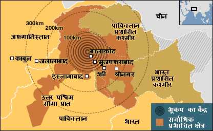 दक्षिण एशिया में शनिवार, 8 अक्तूबर को आए विनाशकारी भूकंप से पाकिस्तान में मारे गए लोगों की संख्या 38 हज़ार पर पहुँच गई है. इस बीच पाकिस्तान प्रशासित कश्मीर में भारी बारिश होने से राहत और बचाव कार्यों में बाधा पहुँच रही है. एक सैन्य प्रवक्ता ने कहा कि एक भी हेलीकॉप्टर प्रभावित इलाक़ों में राहत पहुँचाने के लिए उड़ान नहीं भर सका लेकिन राहत सामग्री सड़क के ज़रिए भेजने के प्रयास किए जा रहे हैं. इस बीच पाकिस्तान के सैनिक प्रवक्ता मेजर जनरल शौकत सुल्तान ने कहा है कि भूकंप में मारे गए लोगों की संख्या 38 हज़ार तक पहुँच गई है. इससे पहले तक मृतकों की संख्या 25 हज़ार बताई गई थी और 62 हज़ार लोग ज़ख़्मी बताए गए हैं. क़रीब बीस लाख लोग बेघर हो गए हैं. भारत प्रशासित कश्मीर में इस भूकंप से 1400 लोग मारे जा चुके हैं और हज़ारों प्रभावित हुए हैं. रावलपिंडी में मौजूद बीबीसी संवाददाता ज़फ़र अब्बास का कहना है कि अधिकारियों ने शनिवार को भी राहत प्रयास जारी रखने की कोशिश की लेकिन भारी बारिश की वजह से उनमें बाधा आ रही है. बारिश की वजह से दर्जनों हेलीकॉप्टर रावलपिंडी और मुज़फ़्फ़राबाद में हवाई अड्डे पर ही रुके रहे, यहाँ तक अमरीकी शिनूक हेलीकॉप्टर भी उड़ान नहीं भर सके. लेकिन ख़राब मौसम विदेशी सहायता को नहीं रोक सका है और अनेक देशों से सहायता लाने वाले विमान शनिवार को भी पाकिस्तान पहुँच रहे थे. सैनिक प्रवक्ता मेजर जनरल सुल्तान ने कहा कि जैसे ही मौसम बेहतर होता है, प्रभावित इलाक़ों में राहत सामग्री पहुँचाने का काम फिर से शुरू कर दिया जाएगा. हालाँकि उन्होंने कहा कि प्रभावित इलाक़ों में जो सैनिक पहले से तैनात हैं वे लोगों की मदद जारी रखे हुए हैं. नक्शे पर भूकंप प्रभावित इलाक़े-