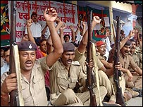 सिन्हा ने कहा कि उत्तर बिहार में तीसरे चरण के चुनाव के कारण भी ज़िले में पुलिस बल की संख्या कम थी. उन्होंने कहा कि राजधानी पटना से विशेष पुलिस दस्ते भेजे गए हैं जो जेल से भगाए गए क़ैदियों का पता लगाने और माओवादी चरमपंथियों को पकड़ने का हरसंभव प्रयास कर रहे हैं. जेल परिसर में माओवादी कुछ पर्चे भी छोड़ गए हैं. भारतीय कम्युनिस्ट पार्टी(माओवादी) के इस पर्चे में रविवार के हमले का नाम दिया है 'ऑपरेशन जेल ब्रेक'. पर्चे में कहा गया है कि उन्होंने जानबूझ कर अपनी कार्रवाई के लिए रूसी क्रांति का दिन 13 नवंबर चुना. पटना से बीबीसी संवाददाता मणिकांत ठाकुर के अनुसार माओवादियों के बढ़ते हमलों के बीच राज्य की पुलिस ख़ुद को बेबस पा रही है, और उनके पास नक्सलियों के आधुनिक हथियारों और बारूदी सुरंगों का समुचित जवाब नहीं है. | इससे जुड़ी ख़बरें होमगार्ड जवानों पर हमला, पाँच की मौत11 नवंबर, 2005 | भारत और पड़ोस नक्सली हमले में 15 लोग मारे गए12 सितंबर, 2005 | भारत और पड़ोस छत्तीसगढ़ में नक्सलियों पर प्रतिबंध05 सितंबर, 2005 | भारत और पड़ोस आँध्र प्रदेश में गिरफ़्तारियाँ19 अगस्त, 2005 | भारत और पड़ोस आंध्र में विधायक सहित दस की हत्या15 अगस्त, 2005 | भारत और पड़ोस नक्सली हिंसा से निपटने के लिए बैठक17 जून, 2005 | भारत और पड़ोस | ||||||||||||||||||||||||||||||||||||||||||||||||||||||||||||||||||||||||||||||||||||||||||