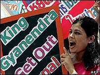 सरकारी टीवी पर घोषणा की गई कि कर्फ़्यू नेपाल के समयानुसार दिन के 11 बजे से शाम 6 बजे तक लागू रहेगा. दूसरी ओर राजनीतिक दलों का राजा ज्ञानेंद्र के सत्ता हथियाने के ख़िलाफ़ आंदोलन जारी है और उन्होंने मंगलवार को एक बड़ी रैली का आहवान किया है. रविवार को राजधानी काठमांडू में पुलिस और प्रदर्शनकारियों के बीच कई झड़पें हुईं थीं. पुलिस ने प्रदर्शनकारियों पर रबड़ की गोलियाँ चलाईं और आँसू गैस छोड़ी जिससे 35 लोग घायल हो गए. रविवार को हज़ारों प्रदर्शनकारी काठमांडू में कर्फ़्यू की परवाह न करते हुए पुलिस के नाकेबंदी को पार कर शहर के बीच पहुँचने की कोशिश करते रहे. सुरक्षा बलों का कहना था कि उन्हें आदेश दिए गए हैं कि प्रदर्शनकारियों को महल की ओर जाने से रोकें. दरअसल राजनीतिक दलों और राजा ज्ञानेंद्र के बीच गतिरोध बना हुआ है. विपक्षी दल पहले ही नेपाल नरेश के उस प्रस्ताव को ठुकरा चुके हैं जिसमें उन्होंने राजनीतिक दलों से प्रधानमंत्री चुनकर सरकार का गठन की बात कही थी. सात राजनीतिक दलों का कहना था कि राजा को उस पूरे मसौदे को लागू करना चाहिए जो लोकतंत्र की स्थापना के लिए दिया गया है. |