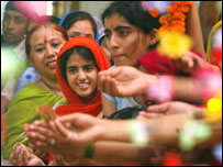 श्रीनगर से 28 किलोमीटर दूर खीरभवानी के मंदिर को हिंदू-मुस्लिम एकता का प्रतीक कहा जा सकता है. इस वर्ष भी यहाँ हज़ारों की संख्या में लोग देवी के दर्शन के लिए उपस्थित हुए हैं. इनमें कई लोग जम्मू, दिल्ली, जयपुर और अन्य शहरों से आए हैं जहाँ वे 16 वर्ष पूर्व घाटी छोड़ चले जाने के बाद से रह रहे हैं. इनमें महिलाएँ भी हैं और बच्चे भी. हाथों में थालियाँ लिए हुए जिन पर दीपक, फूल और मोमबत्तियाँ सजाए हुए हैं. ये लोग माता खीरभवानी की मूर्ति को प्रसाद चढ़ा रहे हैं. यह मूर्ति एक तलाब के बीच स्थापित है. इस तलाब के बारे में मशहूर है कि इस का रंग बदलता है जिससे आने वाली परिस्थितियों का संकेत मिलता है. 75 वर्षीय जवाहर लाल मंदिर के एक कोने में बैठे हैं. वे कहते हैं कि इस तलाब के आसपास पानी कम हो ज़्यादा. तालाब का पानी न कभी बढ़ता है और न कभी घटता है. उन्होंने बताया, "मैंने गत 16 वर्षों से इस तालाब के बदलते रंग देखें है. कभी लाल, कभी काला, कभी गुलाबी और कभी मौंगा जैसा भी हुआ है." कई पंडितों का कहना है कि 16 वर्ष पूर्व तालाब का रंग काला हुआ था जो बुरे हालात का संकेत था. पलायन ध्यान रहे 16 वर्ष पूर्व ही कश्मीर में पृथकतावादी हिंसा शुरू हुई जिसमें अब तक लगभग 50 हज़ार लोग मारे जा चुके हैं और जिसके कारण कश्मीरी पंडितों को कश्मीर से पलायन करना पड़ा. जवाहरलाल ने मुझे बताया कि गत पाँच चार वर्षों से तालाब में पानी का रंग ठीक हो गया है जो अच्छे दिनों का संकेत देता है. लेकिन तालाब का पानी जो भी संकेत दे रहा हो इस वर्ष अपेक्षा से बहुत कम संख्या में पंडित लोग खीरभवानी के दर्शन करने आए. राधाकृष्ण भट कहते हैं, "पिछले साल तो बड़े लोग आए. इस साल तो उससे दस गुना लोग आने थे लेकिन हालात ख़राब हो गए." वे कहते हैं कि 90 प्रतिशत लोगों ने अंतिम समय पर अपनी बुकिंग रद्द कर दी. इससे एक बात स्पष्ट होती है कि कश्मीरी पंडितों ने अभी घाटी लौटने का मन नहीं बनाया है. सरकार ने मंदिर के बाहर सुरक्षा के व्यापक प्रबंध किए हैं. मंदिर के मुख्य द्वार में दाखिल होने से पहले सेना तथा पुलिस के जवान हर व्यक्ति की तलाशी लेते हैं. मेला खीरभवानी की एक विशेषता यह है कि यहाँ जो प्रसाद चढ़ाया जाता है वह स्थानीय मुसलमान उपलब्ध कराते हैं जिन्होंने मंदिर के बाहर दुकानें सजाई हैं. इनमें एक फारूख अहमद भी हैं. उन्होंने बताया, "जबसे पंडित यहाँ से भाग गए हैं हमने सेवा का ज़िम्मा अपने हाथ में ले लिया है. हम यहाँ प्रसाद बेचते हैं. हम मंदिर के सभी काम करते हैं-जैसे पेड़ लगाना और सफाई करना." परंपरा अब यह भी परंपरा बन गई है कि मेला खीरभवानी के अवसर पर मंदिर के बाहर अन्य मुसलमानों की भी भीड़ लगती है. इनमें अधिकांश सरकारी कर्मचारी होते हैं जो अपने पंडित भाइयों को बधाई देने और कुछ सुविधाएँ उपलब्ध कराने आए थे.