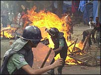 बांग्लादेश में 23 जनवरी को चुनाव होने वाले हैं. सैनिकों की तैनाती के बारे में गृह मंत्रालय ने एक बयान जारी किया है. इस बयान में कहा गया है- आम जनजीवन और संपत्ति की सुरक्षा के लिए सेना को तैनात किया गया है ताकि नागरिक प्रशासन सुचारु रूप से चल सके. हाल के दिनों में विपक्षी आवामी लीग और अन्य पार्टियों ने चुनाव सुधारों की मांग करते हुए कई बार राष्ट्रव्यापी विरोध प्रदर्शन किया है. इन पार्टियों का आरोप है कि मतदाता सूची बहुत पुरानी है और चुनाव आयोग के कुछ सदस्य निष्पक्ष नहीं हैं. पार्टियों का आरोप है कि चुनाव आयोग के सदस्य ख़ालिदा ज़िया की बांग्लादेश नेशनलिस्ट पार्टी (बीएनपी) के प्रति सहानुभूति रखते हैं. पिछले सप्ताह ही बांग्लादेश के चुनाव आयोग ने कहा था कि लगातार हो रहे विरोध प्रदर्शनों के कारण मतदान दो दिनों के लिए टाला जा रहा है. पहले मतदान 21 जनवरी को होना था लेकिन अब ये 23 जनवरी को होगा. प्रधानमंत्री के रूप में ख़ालिदा ज़िया का कार्यकाल 28 अक्तूबर को ख़त्म हो गया था. इसके बाद राष्ट्रपति इयाजुद्दीन अहमद कार्यवाहक सरकार के प्रमुख बने थे. उनका कार्यकाल ख़त्म होने के बाद विरोध प्रदर्शनों में अभी तक 44 लोगों की मौत हो चुकी है. बांग्लादेश के संविधान के मुताबिक़ कार्यवाहक सरकार को 90 दिनों के अंदर चुनाव कराना ज़रूरी होता है. | इससे जुड़ी ख़बरें बांग्लादेश में सेना तैनात की गई09 दिसंबर, 2006 | भारत और पड़ोस बांग्लादेश में 'टल' सकता है चुनाव07 दिसंबर, 2006 | भारत और पड़ोस बांग्लादेश में सुप्रीम कोर्ट जज हड़ताल पर05 दिसंबर, 2006 | भारत और पड़ोस बांग्लादेश में 'चक्का जाम' समाप्त04 दिसंबर, 2006 | भारत और पड़ोस बांग्लादेश में झड़पें, एक व्यक्ति मारा गया03 दिसंबर, 2006 | भारत और पड़ोस पूर्वी सीमा पर जवानों की तैनाती बढ़ेगी28 नवंबर, 2006 | भारत और पड़ोस बांग्लादेश में 21 जनवरी को होंगे चुनाव27 नवंबर, 2006 | भारत और पड़ोस बांग्लादेश में पार्टी कार्यकर्ता भिड़े, 50 घायल20 नवंबर, 2006 | भारत और पड़ोस | ||||||||||||||||||||||||||||||||||||||||||||||||||||||||||||||||||||||||||||||||||||||||||
