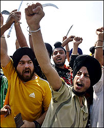 भारत में सिखों के पाँच वरिष्ठ धार्मिक नेताओं ने गुरू गोविंद सिंह की कथित अवमानना करने के लिए 'डेरा सच्चा सौदा' पंथ के अनुयायियों का सामाजिक बहिष्कार करने का आहवान किया है. उधर सिखों और डेरा सच्चा सौदा के अनुयायियों के बीच मतभेद की वजह से पंजाब और हरियाणा के कुछ हिस्सों में गुरूवार को चौथे दिन भी तनाव रहा. सिखों के पाँच वरिष्ठ धार्मिक नेताओं ने गुरूवार को भटिंडा के तलवंडी सैबो में अहम बैठक की और पंजाब सरकार को चेतावनी दी कि वह "सिख विरोधी गतिविधियों" के लिए डेरा सच्चा सौदा के ख़िलाफ़ दस दिन के भीतर ठोस कार्रवाई करे. इन नेताओं ने कहा है, "यह अवधि गुज़र जाने के बाद सिख ख़ुद ही डेरा सच्चा सौदा के ख़िलाफ़ कार्रवाई करने के लिए बाध्य होंगे." शिरोमणि गुरूद्वारा प्रबंधक कमेटी (एसजीपीजी) को पंजाब में डेरा सच्चा सौदा और उसके अनुयायियों की गतिविधियों पर नज़र रखने की ज़िम्मेदारी सौंपी गई है. पाँच वरिष्ठ धार्मिक नेताओं की इस बैठक की अध्यक्षता अकाल तख़्त के जत्थेदार जोगिंदर सिंह वेदांती ने की जिन्होंने पत्रकारों को बताया कि भटिंडा और कुछ अन्य स्थानों पर सिखों पर कथित रूप से हमला करने के आरोप में हरियाणा के सिरसा में स्थित डेरा सच्चा सौदा के ख़िलाफ़ मामला दर्ज किए जाने की माँग भी की गई. सिरसा सिरसा से ख़बरें मिली हैं कि डेरा सच्चा सौदा के मुखिया गुरमीत राम रहीम सिंह ने रणनीति पर विचार करने के लिए अपने वरिष्ठ पदाधिकारियों की बैठक बुलाई. डेरा के सूत्रों ने कहा कि उनके कार्यकर्ता तलवंडी सैबो गुरूद्वारा में हुई बैठक के फ़ैसले का इंतज़ार कर रहे थे. तलवंडी सैबो गुरूद्वारा में इस बैठक से पहले ही पंजाब के विभिन्न हिस्सों से आए अनेक सिख वहाँ इकट्ठा हो गए जो तलवारों, लोहे की छड़ों और बंदूकों से लैस थे. उनमें से कुछ लोग पाँच वरिष्ठ धार्मिक नेताओं के इस फ़ैसले से संतुष्ट नहीं थे और उन्होंने अपनी नाराज़गी ज़ाहिर करने के लिए हवा में गोलियाँ भी चलाईं. प्रदर्शन और बंद सिख प्रदर्शनकारियों ने पंजाब और हरियाणा के अमृतसर, पटियाला, करनाल और यमुना नगर सहित अनेक स्थानों पर मार्च निकाला. सिखों के पवित्र शहर अमृतसर में आंशिक बंद भी रखा गया. स्वर्ण मंदिर के आसपास के इलाक़े में पूरी तरह बंद रखा गया.