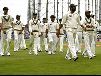 हालांकि, क्रिकेट के नियम ये कहते हैं कि अगर कोई भी टीम मैदान पर उतरने से मना करती है तो वो मैच को हार जाती है. ओवल में गेंद के साथ छेड़छाड़ का विवाद उठने पर जब पाकिस्तान की टीम ड्रेसिंग रूम से बाहर नहीं आई तो अंपायरों ने जाकर टीम से बात की थी. अंपायरों के लाख मनाने के बावजूद पाकिस्तान ने मैदान पर उतरने से मना कर दिया था. जिसकी वजह से अंपायरों ने इस टेस्ट मैच में इंग्लैंड को जीत दे दी थी. इस पूरे विवाद के दौरान पाकिस्तान क्रिकेट बोर्ड(पीसीबी) के अध्यक्ष थे शहरयार खान. शहरयार खान का कहना है, "अगर मैच के परिणाम में किसी भी तरह का बदलाव किया जाता है तो वो इसका स्वागत करेंगे." शहरयार अब भी अपनी टीम का बचाव करते दिखाई दे रहे हैं. उनका कहना है कि पाकिस्तान की टीम मैदान पर उतरना चाहती थी. गेंद से छेड़छाड़ करने के आरोपों के बाद बस वो कुछ देर कर रही थी. हेयर पर भी लगे थे आरोप इस पूरे विवाद के लिए पाकिस्तान ने मैच के दौरान मैदान पर अंपायर रहे डेरल हेयर को ज़िम्मेदार ठहराया था.