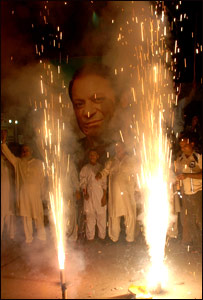 ये कूटनयिक चाहते थे कि मुशर्रफ़ स्वेच्छा से पद छोड़ दें और उनके ख़िलाफ़ देशद्रोह का मुक़दमा न चलाया जाए. दूसरी ओर पीएमएल (नवाज़) के शीर्ष नेता नवाज़ शरीफ़ ने ज़ोर देकर कहा था कि वे परवेज़ मुशर्रफ़ को कोई सुरक्षित रास्ता देने या उनके ख़िलाफ़ मुकदमा न चलाए जाने का वादा करने के ख़िलाफ़ हैं. उल्लेखनीय है कि देशद्रोह का आरोप सिद्ध होने पर फाँसी तक की सज़ा दी जा सकती है. लेकिन पाकिस्तान पीपुल्स पार्टी (पीपीपी) का कहना है कि मुशर्रफ़ पर देशद्रोह का मुक़दमा चले या नहीं, इसका फ़ैसला संसद को करना चाहिए. उल्लेखनीय है कि मुशर्रफ़ ने पिछले वर्ष सेनाध्यक्ष का पद छोड़ दिया था. फ़रवरी महीने में हुए चुनाव में उनका समर्थन करने वाली पार्टियों को भारी हार का सामना करना पड़ा था. |