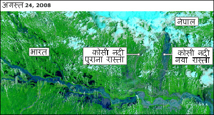 बिहार में बाढ़ के कारण स्थिति गंभीर बनी हुई है. दरअसल इतने बड़े पैमाने पर आई बाढ़ की वजह है कोसी नदी का अपना रास्ता बदलना. आइए नक्शे में नज़र डालते हैं कि कोसी ने कैसे अपना रास्ता बदला.
