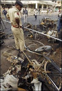 पुलिस अधीक्षक राजेंद्र ब्रह्मभट्ट के अनुसार यह बम मोटरसाइकिल पर रखा गया था और इसमें टाइमर का इस्तेमाल किया गया. जिस इलाक़े में विस्फोट हुआ है उसके आगे हिंदुओं का मोहल्ला है. यह विस्फोट ऐसे समय में हुआ है जब मंगलवार से गुजरात में सबसे बड़ा त्यौहार नवरात्र शुरु हो रहा है और उसके अगले दिन ईद मनाई जानी है. स्थानीय पत्रकार अजय उमठ का कहना है कि धमाके के बाद क्राइम ब्रांच के साथ फ़ोरेंसिक टीम वहाँ पहुँची. जाँच करने वाले अधिकारियों का कहना है कि धमाके में इस्तेमाल बम मोटरसाइकल की टंकी में रखा हुआ था और इसमें अमोनियम नाइट्रेट का इस्तेमाल हुआ. यह बम लोहे के फर्मे में फिट किया गया था जिसे टाइमर से जोड़ा गया. इसी वर्ष 26 जुलाई को अहमदाबाद में हुए सिलसिलेवार धमाकों में 49 लोग मारे गए थे और डेढ़ सौ से ज़्यादा घायल हुए थे. इन धमाकों में इस्तेमाल किए गए बम लकड़ी के फ्रेम में रखे गए थे. सोमवार सुबह ही अहमदाबाद के रेवड़ी बाज़ार इलाक़े से 17 देसी बम बरामद किए गए थे जिन्हें निष्क्रिय कर दिया गया. |