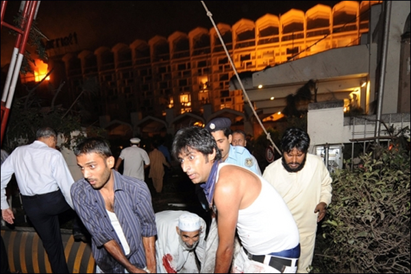 पाकिस्तान की राजधानी इस्लामाबाद में मैरिएट होटल के बाहर ज़ोरदार धमाका हुआ है.