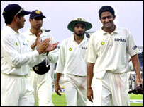 टॉस जीतकर पहले मेज़बान टीम को बल्लेबाज़ी के लिए उतारने के बाद भारत ने शुरू से ही मैच पर पकड़ बनाए रखी. इरफ़ान पठान ने पाँच और अनिल कुंबले व ज़हीर ख़ान ने दो-दो विकेट लिए. आख़िरी बल्लेबाज़ रन आउट हुआ. इसी दौरान अनिल कुंबले ने मोहम्मद रफ़ीक़ का विकेट लेकर कपिल देव के 434 विकेट के रिकॉर्ड को तोड़ दिया. अब कुंबले टेस्ट क्रिकेट में भारत की ओर से सबसे ज़्यादा टेस्ट विकेट लेने वाले खिलाड़ी बन गए हैं. बांग्लादेश की ओर से मध्यक्रम के मोहम्मद अशरफ़ुल ने अच्छी बल्लेबाज़ी की और वे 60 रन बनाकर नाबाद रहे. जबकि मोहम्मद रफ़ीक़ ने 47 रनों की पारी खेली. | इससे जुड़ी ख़बरें कुंबले ने तोड़ा कपिल देव का रिकॉर्ड11 दिसंबर, 2004 | खेल हौसला नहीं हारते हैं कुंबले कभी10 दिसंबर, 2004 | खेल पहला दिन भारतीय गेंदबाज़ों का रहा10 दिसंबर, 2004 | खेल चटगाँव में भी खेलेगी भारतीय टीम09 दिसंबर, 2004 | खेल भारतीय क्रिकेट टीम ढाका पहुँची08 दिसंबर, 2004 | खेल इंटरनेट लिंक्स बीबीसी बाहरी वेबसाइट की विषय सामग्री के लिए ज़िम्मेदार नहीं है. | |||||||||||||||||||||||||||||||||||||||||||||||||||||||||||||||||||||||||||||||||||||||||||||