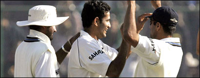 भारत और श्रीलंका के बीच दिल्ली में हो रहे टेस्ट मैच के तीसरे दिन खेल ख़त्म होने तक भारत ने 237 रन बनाए हैं. भारत के पाँच खिलाड़ी आउट हो चुके हैं. इस तरह भारत की कुल बढ़त 290 रनों की हो गई थी. चौथे दिन का खेल दोनों देशों के लिए काफ़ी महत्वपूर्ण है. क्योंकि इसी से ये तय होगा कि भारत श्रीलंका के साथ कितना बड़ा लक्ष्य रखता है. भारत की दूसरी पारी के स्टार रहे इरफ़ान पठान जिन्होंने 93 रन बनाए. इससे पहले श्रीलंका की टीम सुबह खेल शुरू होने के कुछ देर बाद ही 230 रन बनाकर आउट हो गई. पहली पारी में भारत ने बल्लेबाज़ी करते हुए 290 रन बनाए थे जिसमें सचिन का शानदार शतक भी शामिल है. इससे पहले चेन्नई में वर्षा से बाधित पहला टेस्ट मैच अनिर्णीत रहा था. अंतिम टेस्ट मैच 18 दिसंबर से अहमदाबाद में होगा. | इससे जुड़ी ख़बरें पठान के चलते भारत की स्थिति मज़बूत12 दिसंबर, 2005 | खेल कुंबले चमके, श्रीलंका छह विकेट पर 19811 दिसंबर, 2005 | खेल विशाल स्कोर के दबाव में पाकिस्तान हारा10 दिसंबर, 2005 | खेल विश्व चैम्पियन के ख़िलाफ़ रिकॉर्ड जीत10 दिसंबर, 2005 | खेल 'मतभेदों को बढ़ा-चढ़ा कर बताया गया'07 दिसंबर, 2005 | खेल | |||||||||||||||||||||||||||||||||||||||||||||||||||||||||||||||||||||||||||||||||||||||||||||